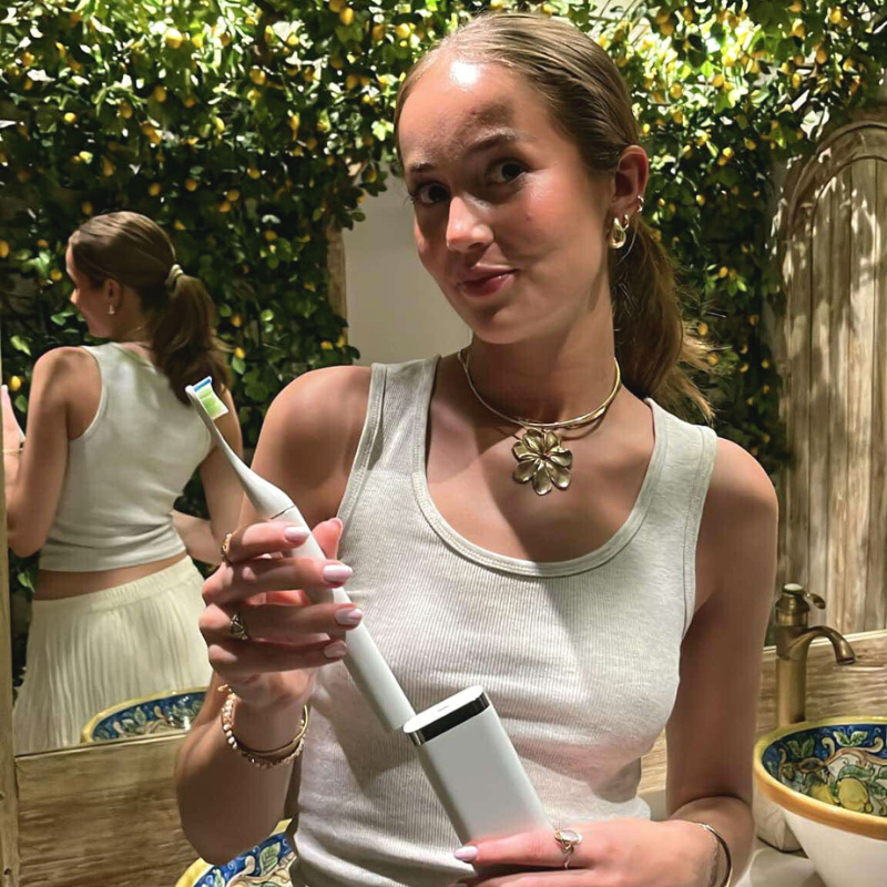 "Denne tandbørste er en game-changer! Virkelig nem at bruge, og batteriet holder i evigheder."